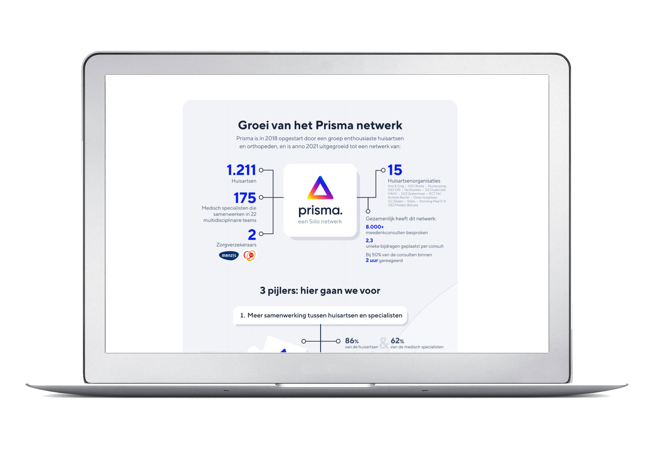Door samen te werken en kennis te delen, kunnen we meer bereiken. In deze infographic deelt Prisma wat volgens huisartsen en specialisten de meerwaarde is van het netwerk.